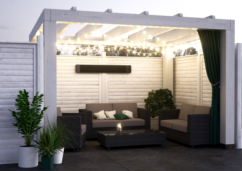 TERRASVERWARMING INFRAROOD TERMOFOL infraroodstralers voor buiten worden vervaardigd met behulp van de nieuwste technologie en een uniek ontwerp. De radiatorkern is gemaakt van een speciaal materiaal dat is geproduceerd met behulp van technologie die in de luchtvaart wordt gebruikt (weerstandsverwarming in een keramische coating). De energie-efficiëntiefactor van onze radiatoren bedraagt 99%, wat betekent dat het zeer efficiënte en energiebesparende producten zijn. Het oppervlak van de verwarmingspanelen is bedekt met een speciale laag met toevoeging van nanomateriaal dat het paneel beschermt tegen de gevolgen van het werken bij hoge temperaturen, terwijl de vrije emissie van infraroodstraling behouden blijft. Deze laag verhoogt de infraroodstralingsindex tot 86%. TERMOFOL-radiatoren zijn stil in gebruik, energiebesparend, comfortabel en betrouwbaar - waardoor ze veel worden gebruikt in zowel industriële als huishoudelijke toepassingen. Ze kunnen worden bediend met behulp van de Termofol Smart-applicatie en de afstandsbediening die bij het apparaat wordt geleverd.
